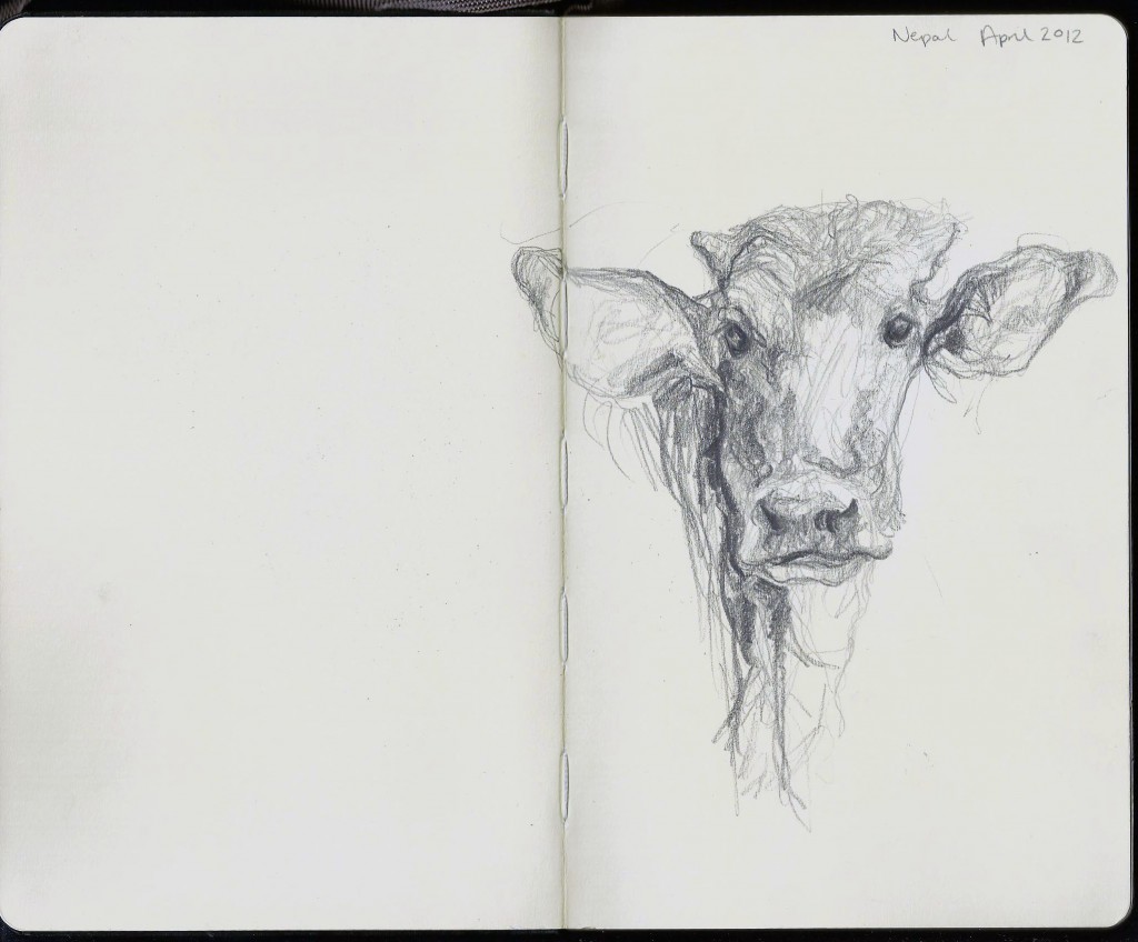 Jelly Green brought us another of her richly painted cow portraits recently, then produced a Moleskine sketchbook from her bag to show that cows are not her only subjects.