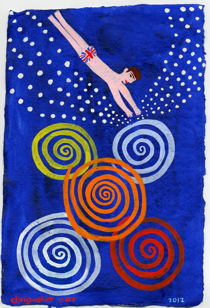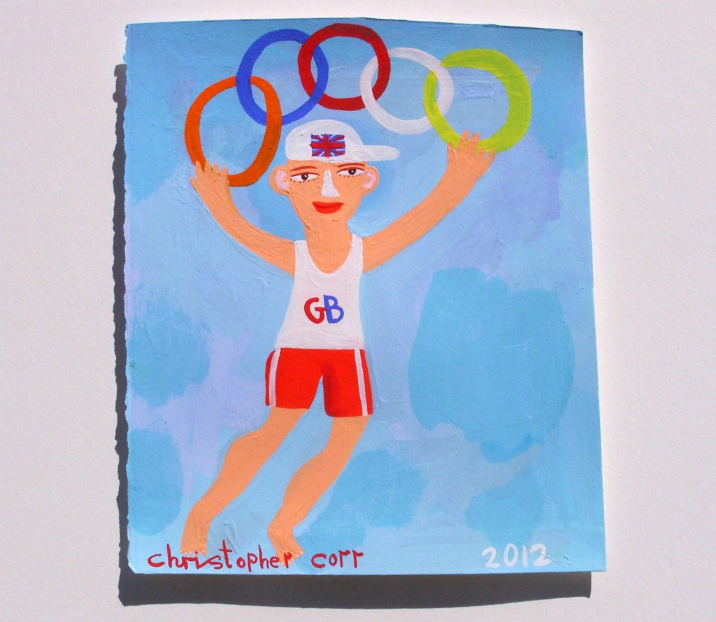 Christopher Corr commemorates the London 2012 Olympics with a team of exuberant athletes. See them working out at The Rowley Gallery, stretching the limits of human endeavour, Brighter, Warmer, Friendlier.